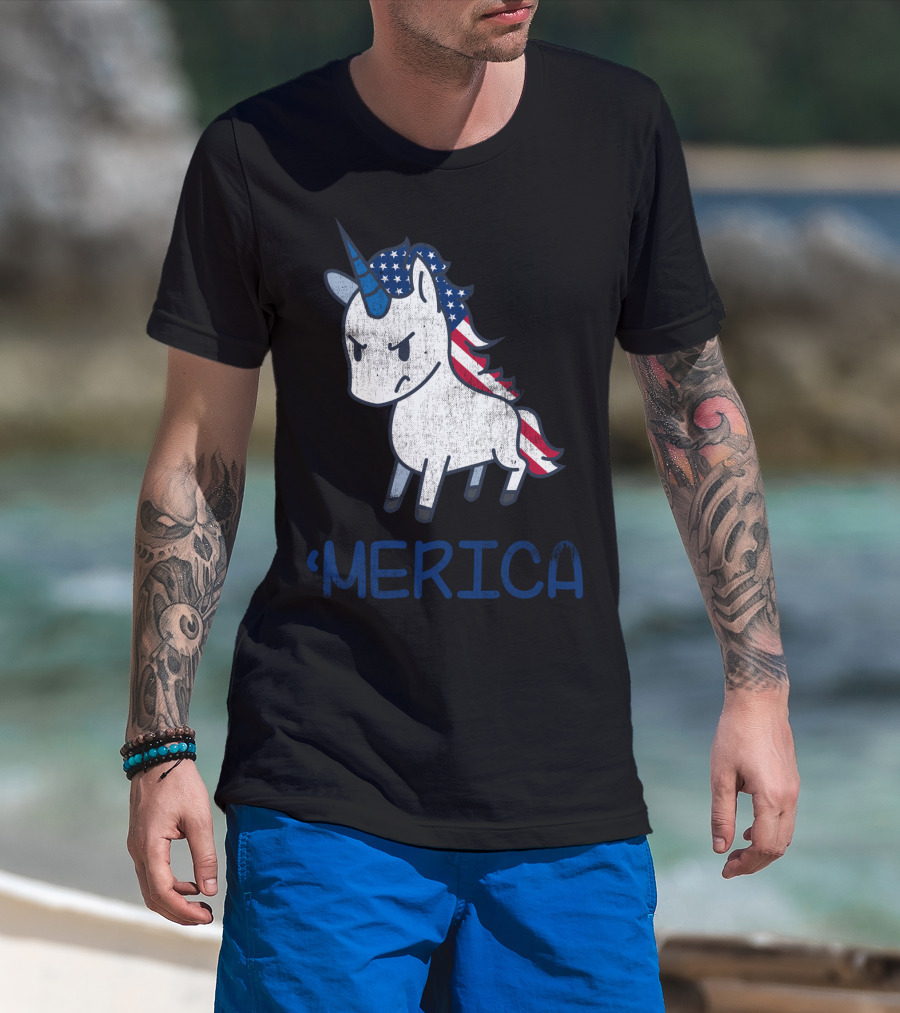 Merica Unicorn With Patriotic Stars And Stripes Mane Americorn T-Shirt