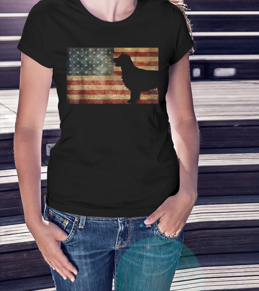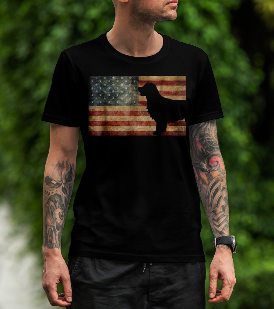 Golden Retriever Silhouette With Vintage American Flag T-Shirt