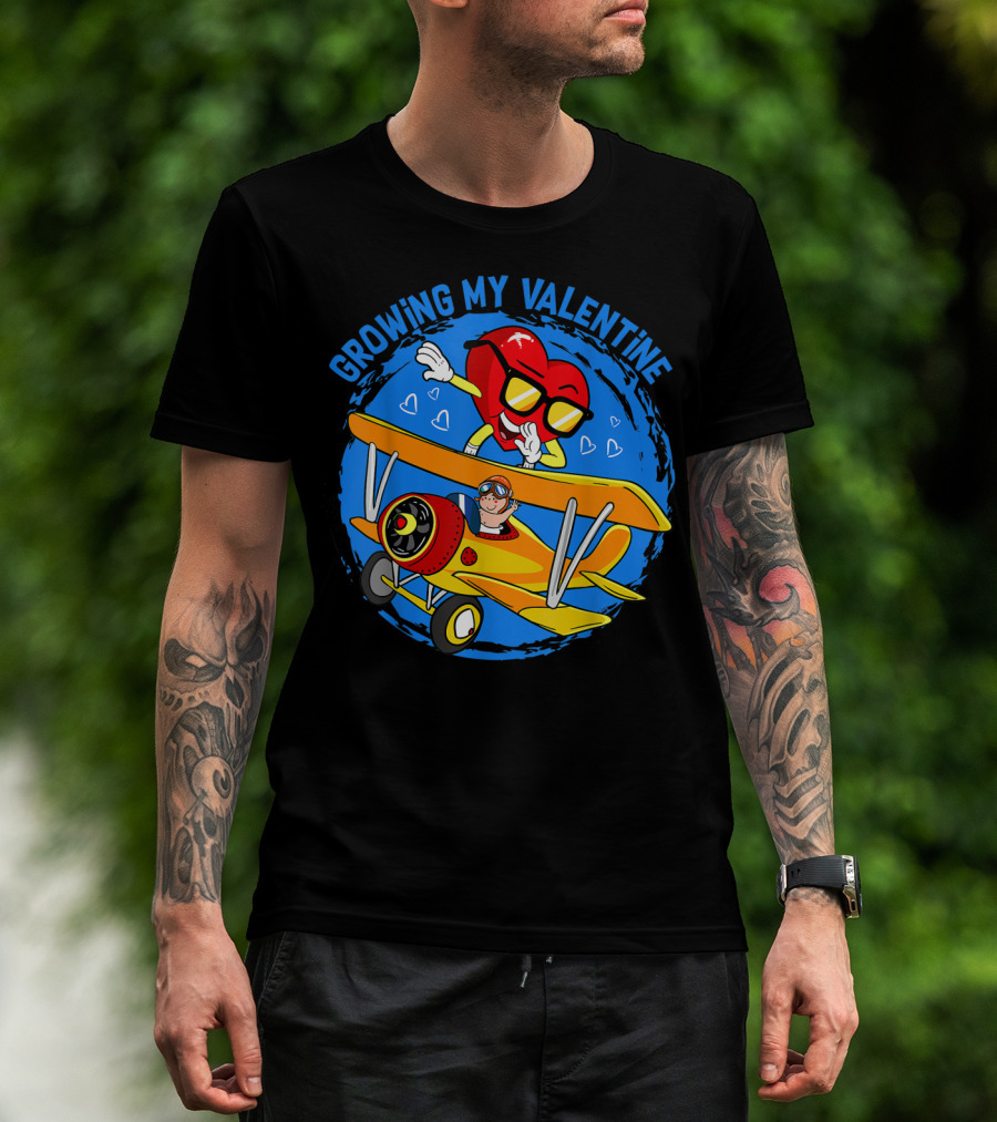 Growing My Valentine Heart Airplane Dabbing Valentine's T-Shirt