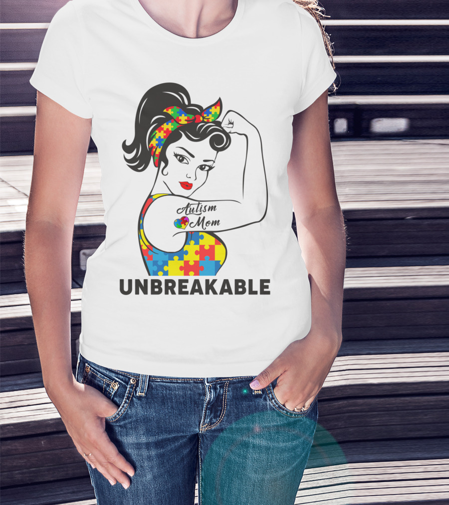 Autism Awareness Unbreakable Autism Mom Puzzle T-Shirt