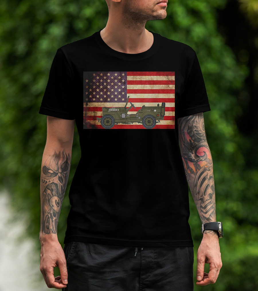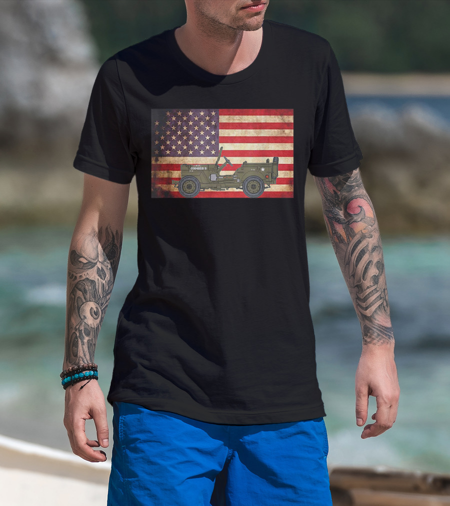 American USA Flag Willys Jeep WW2 Military Army Vehicle Stars And Stripes Vintage Retro Iconic T-Shirt