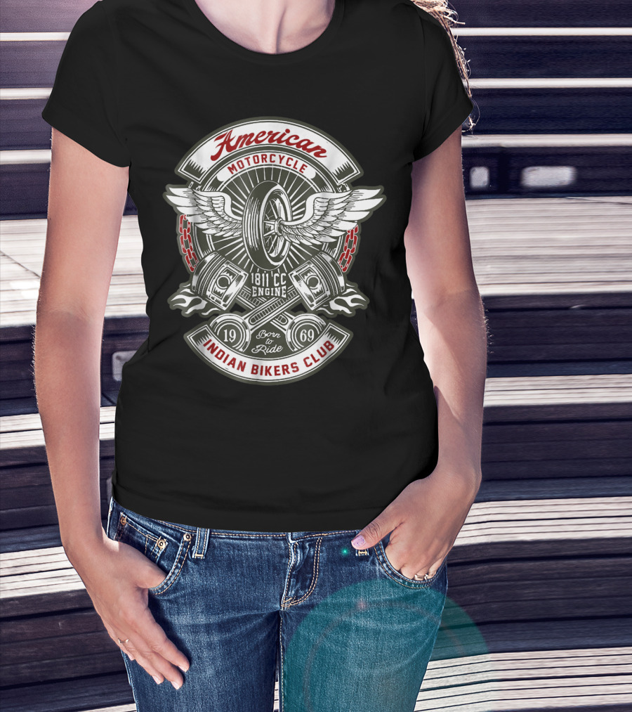American Motorcycle Indian Bikers Club 1811 CC Engine Born To Ride 1969 T-Shirt