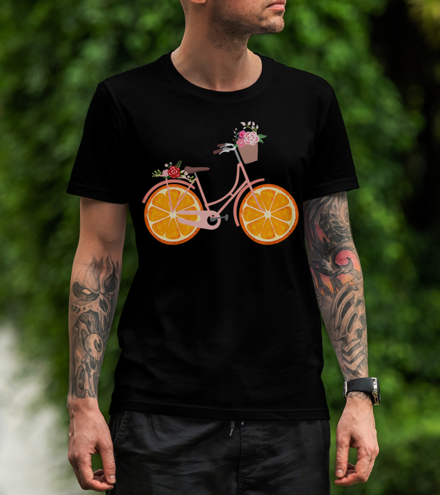 Vintage Bike Bicycle With Flower Basket And Orange Fruit Wheels T-Shirt