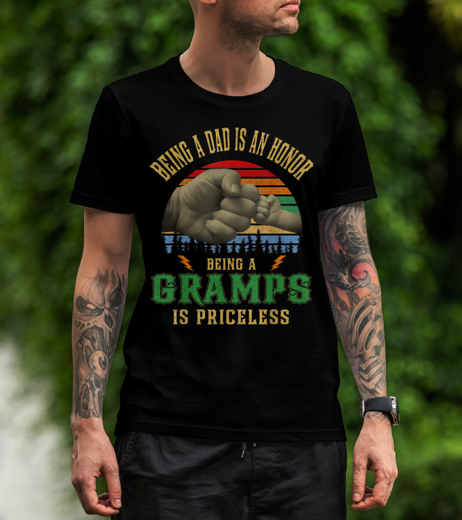 Being A Dad Is An Honor Being A Gramps Is Priceless Fist Bump Retro Circle T-Shirt