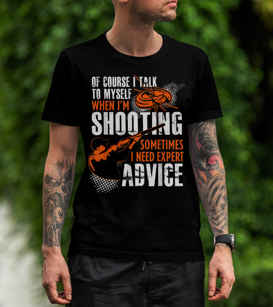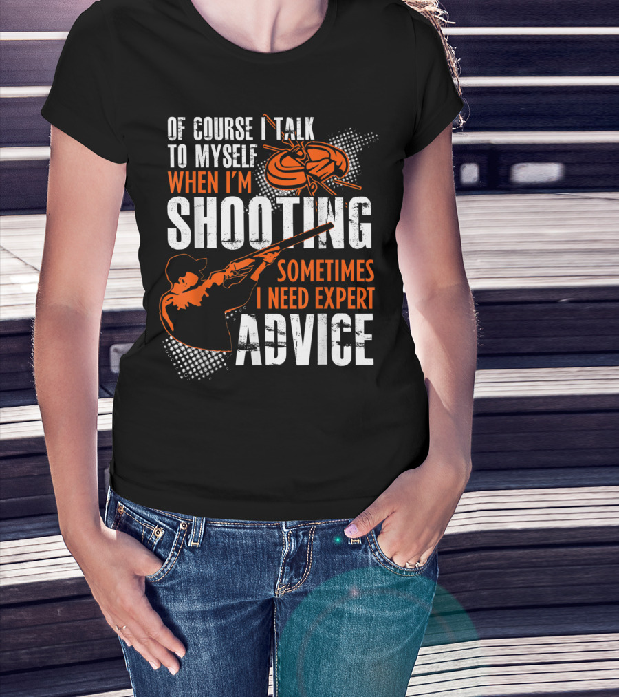 The Of Course I Talk To Myself When I'm Shooting Sometimes I Need Expert Advice T-shirt is designed for everyday wear and a consistent fit. Fabric is pre-shrunk ring-spun cotton with durable stitching. See the size chart below for exact measurements.