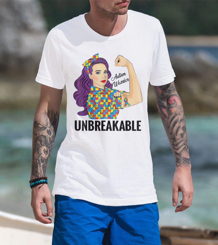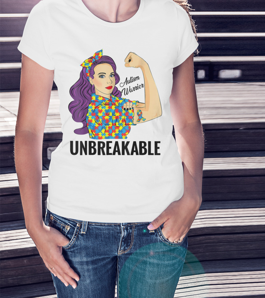 Autism Awareness Warrior Unbreakable Puzzle Ribbon Rosie The Riveter T-Shirt