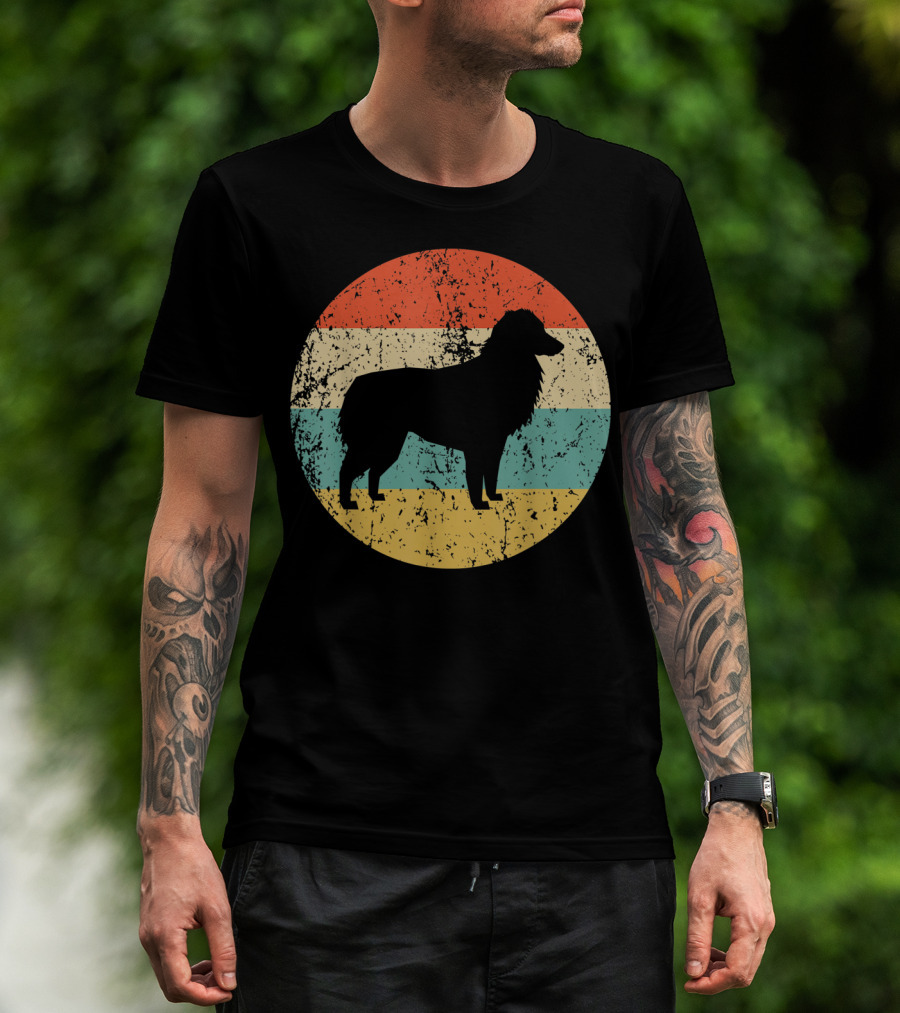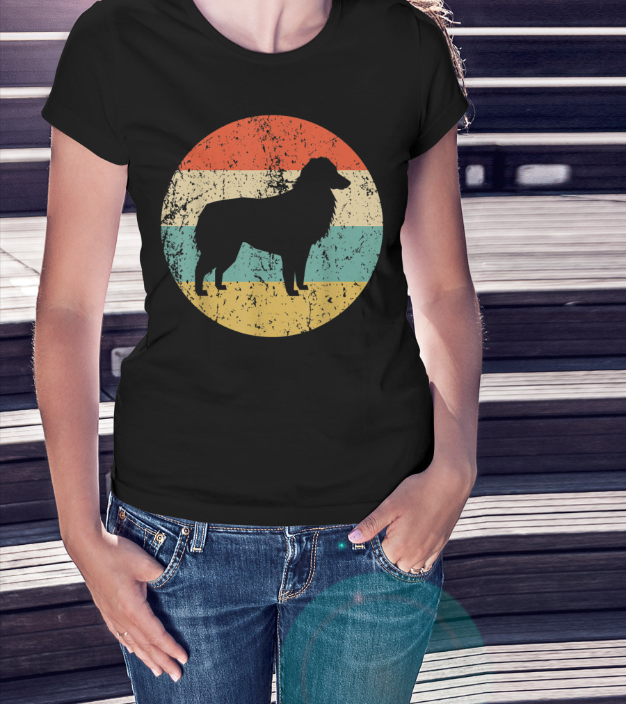 Australian Shepherd Silhouette Retro Circle Stripe T-Shirt