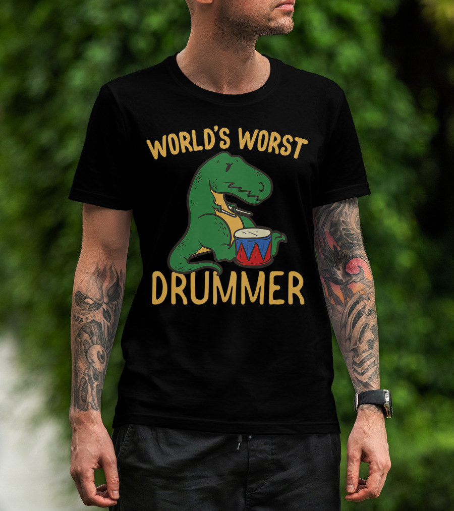 WORLD'S WORST DRUMMER T-REX DRUMMING DINO BIRT T-Shirt
