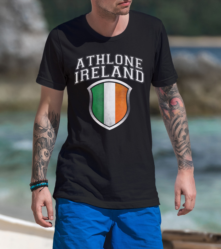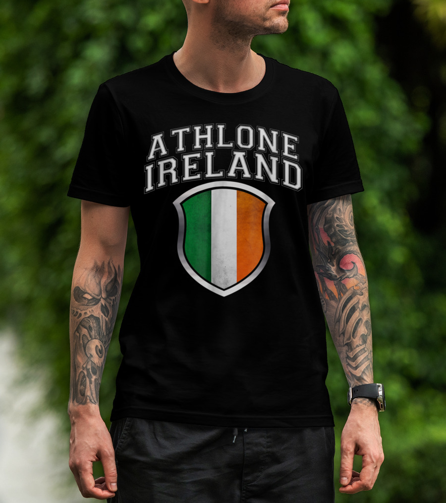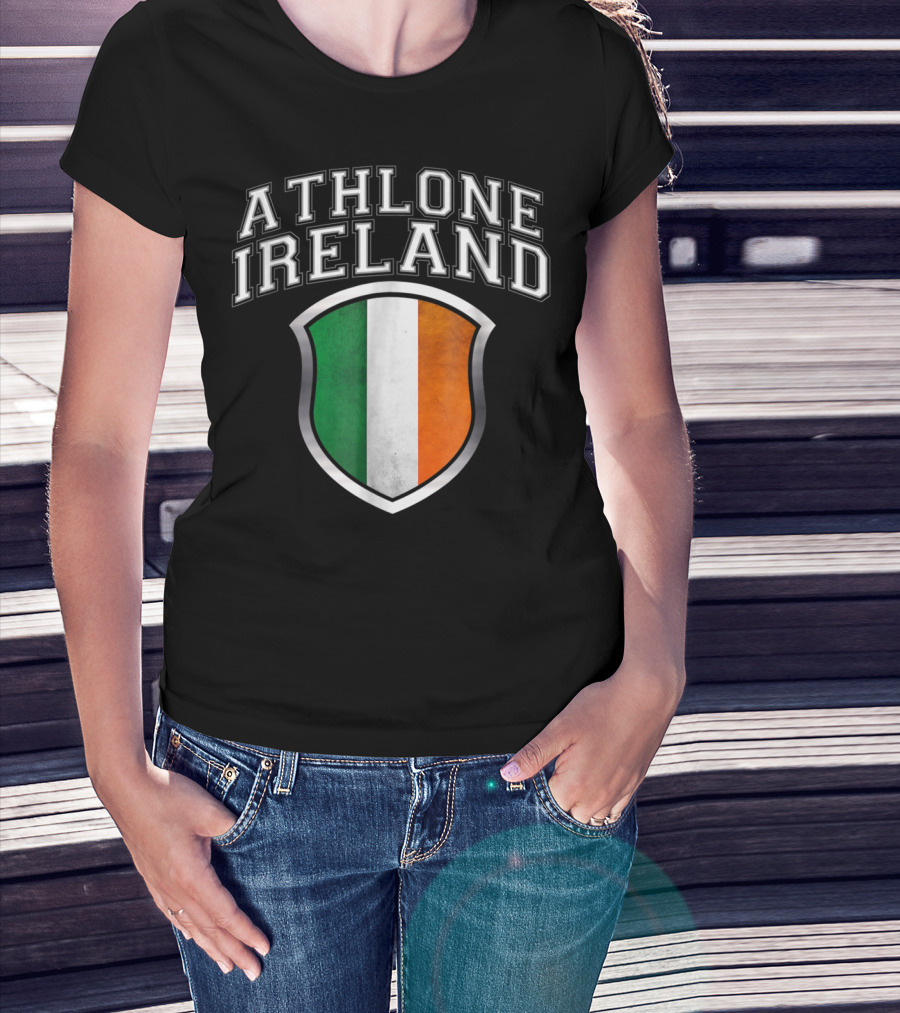 Athlone Ireland With Irish Flag Shield Crest T-Shirt