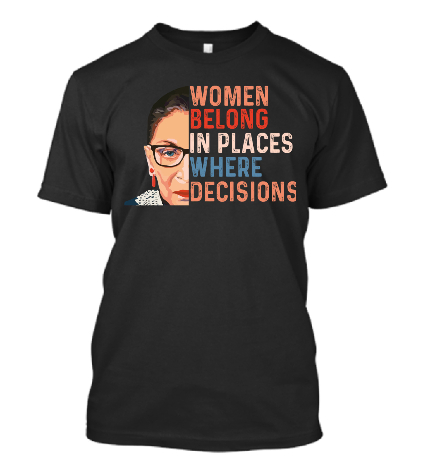 The Women Belong In Places Where Decisions Are Being Made Ruth Bader Ginsburg T-shirt is designed for everyday wear and a consistent fit. Fabric is pre-shrunk ring-spun cotton with durable stitching. See the size chart below for exact measurements.