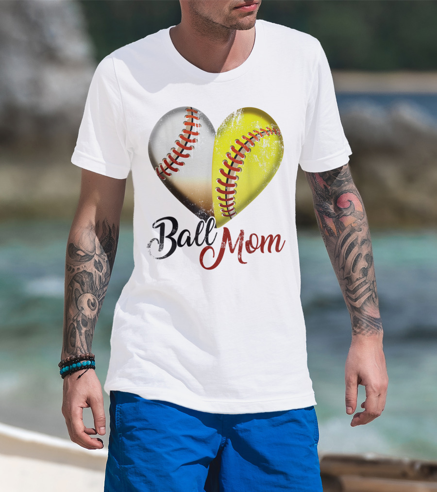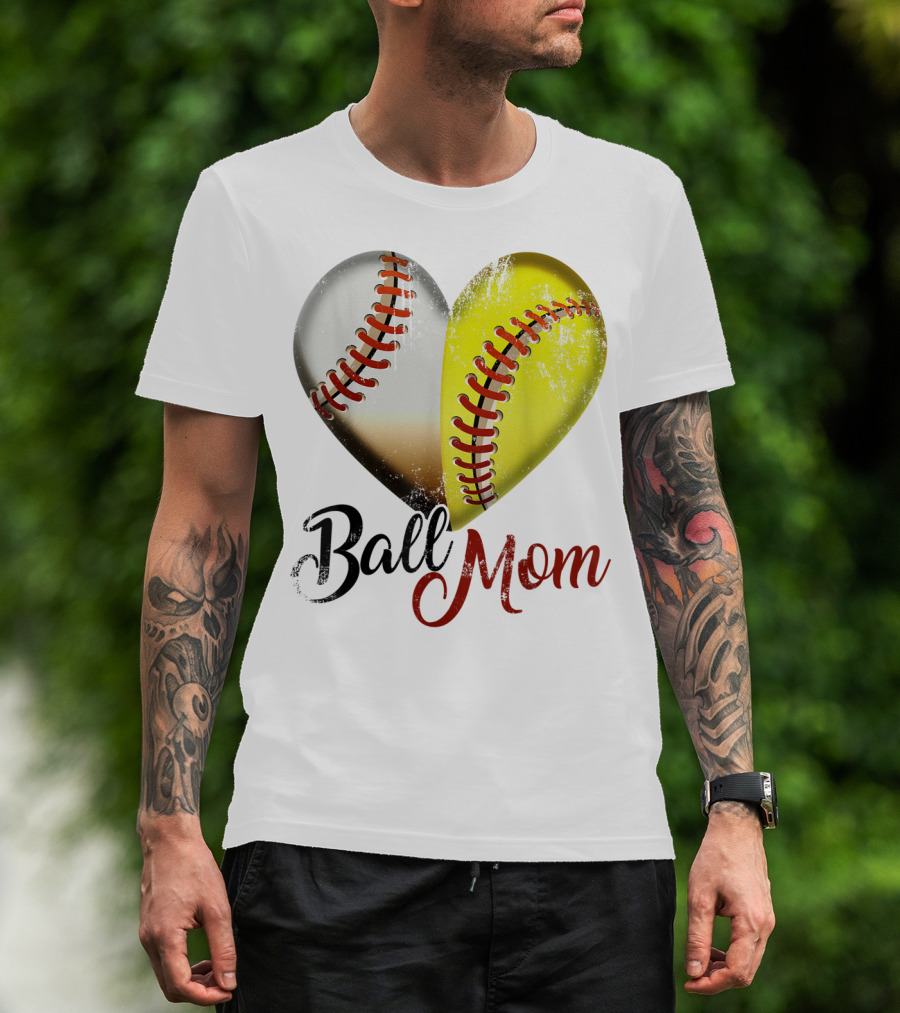 Ball Mom Heart Baseball Players Funny T-Shirt