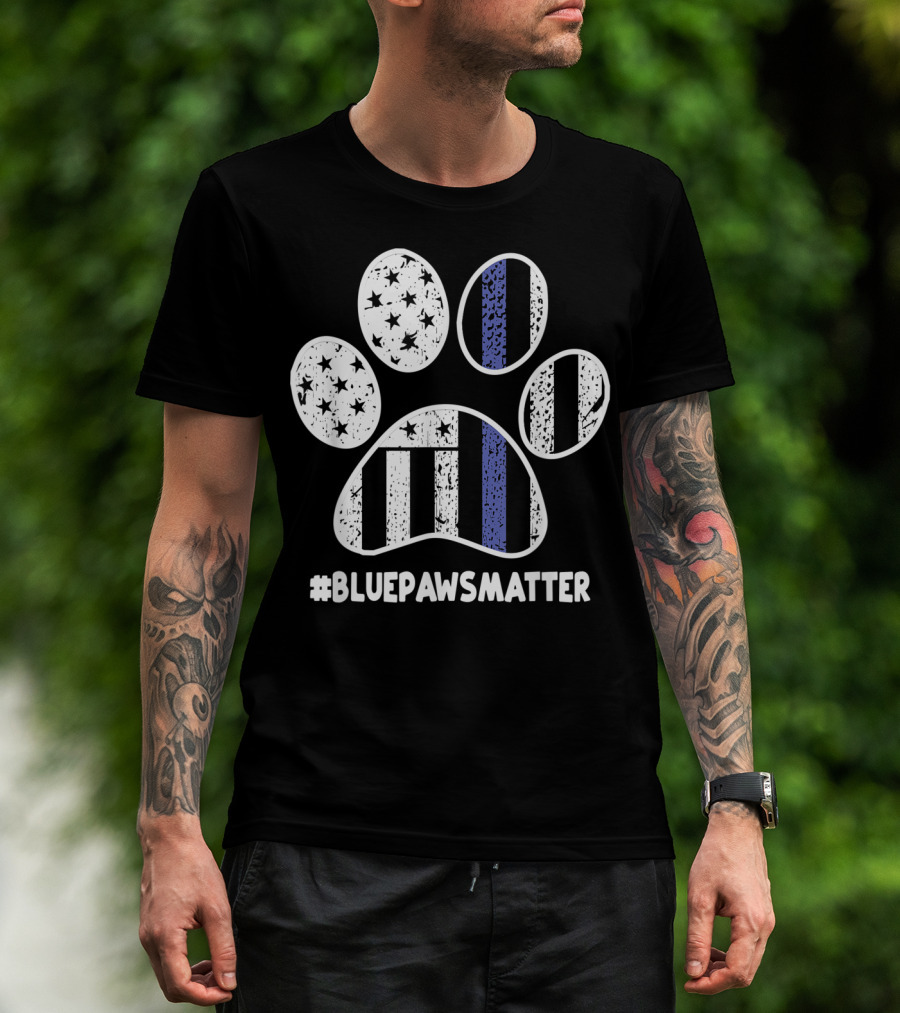 BluePawsMatter Thin Blue Line Police K9 Dog Paws T-Shirt