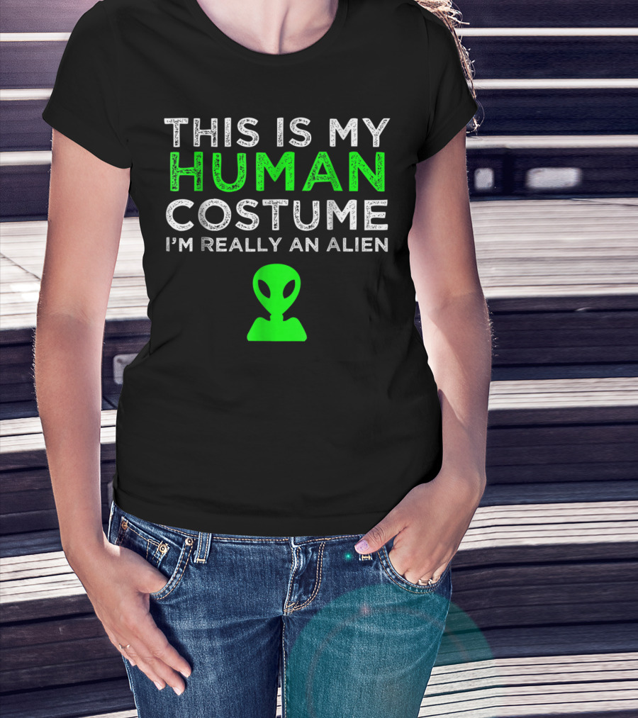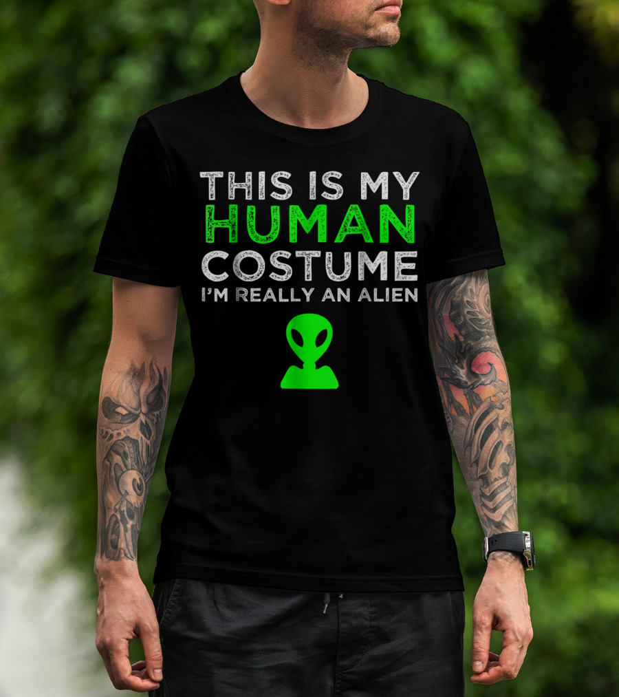 This Is My Human Costume I'm Really An Alien With Green Alien Head T-Shirt