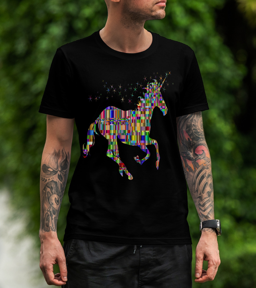 The Riding Unicorn Rawr Sparkling Rainbow Stripes T-shirt is designed for everyday wear and a consistent fit. Fabric is pre-shrunk ring-spun cotton with durable stitching. See the size chart below for exact measurements.