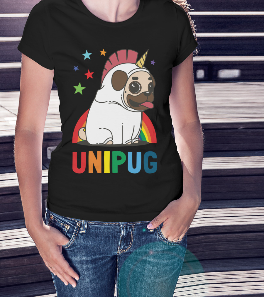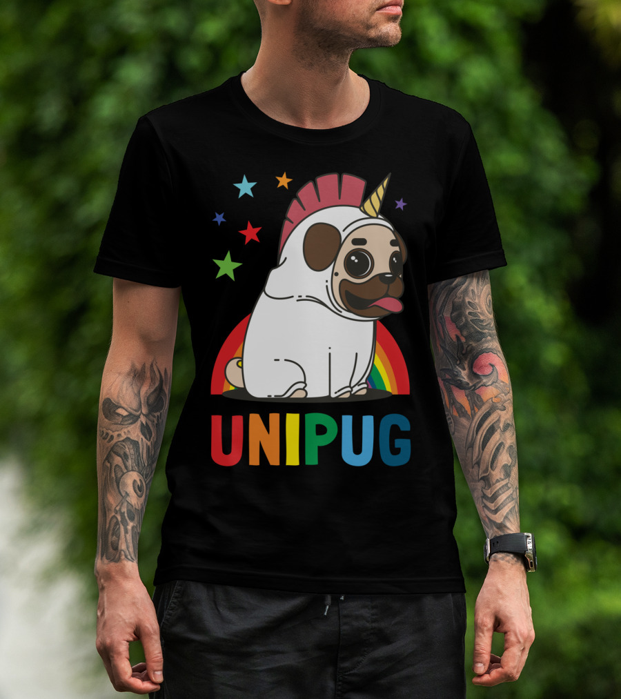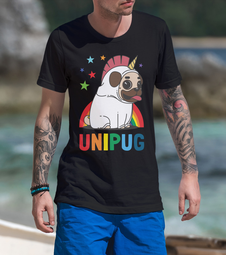 UNIPUG Rainbow Unicorn Pug Dog With Stars T-Shirt