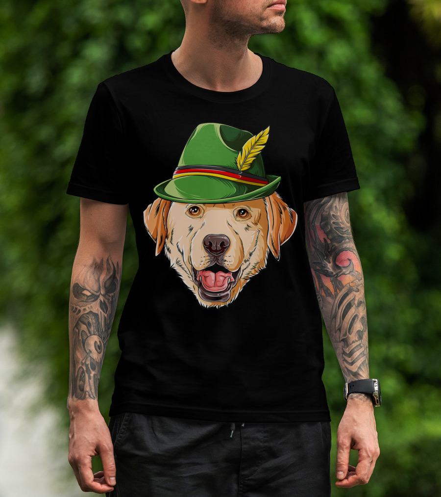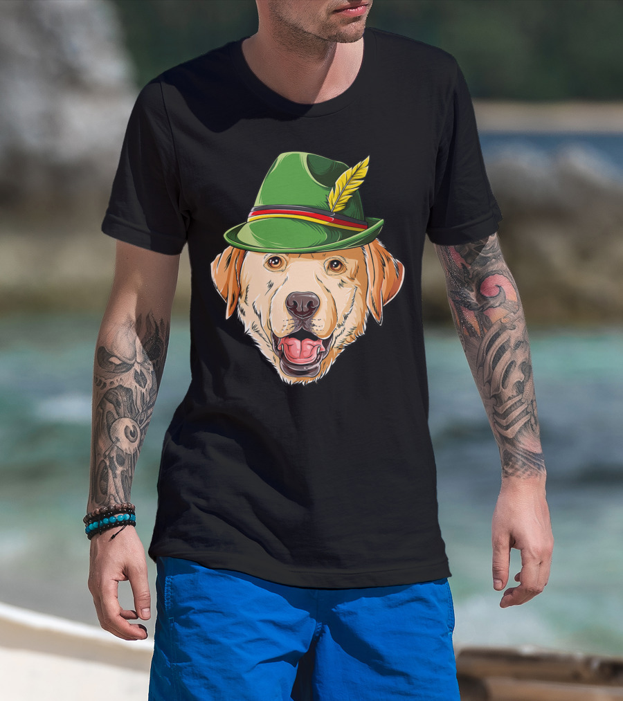 Labrador Oktoberfest Dog In Green German Hat With Feather T-Shirt