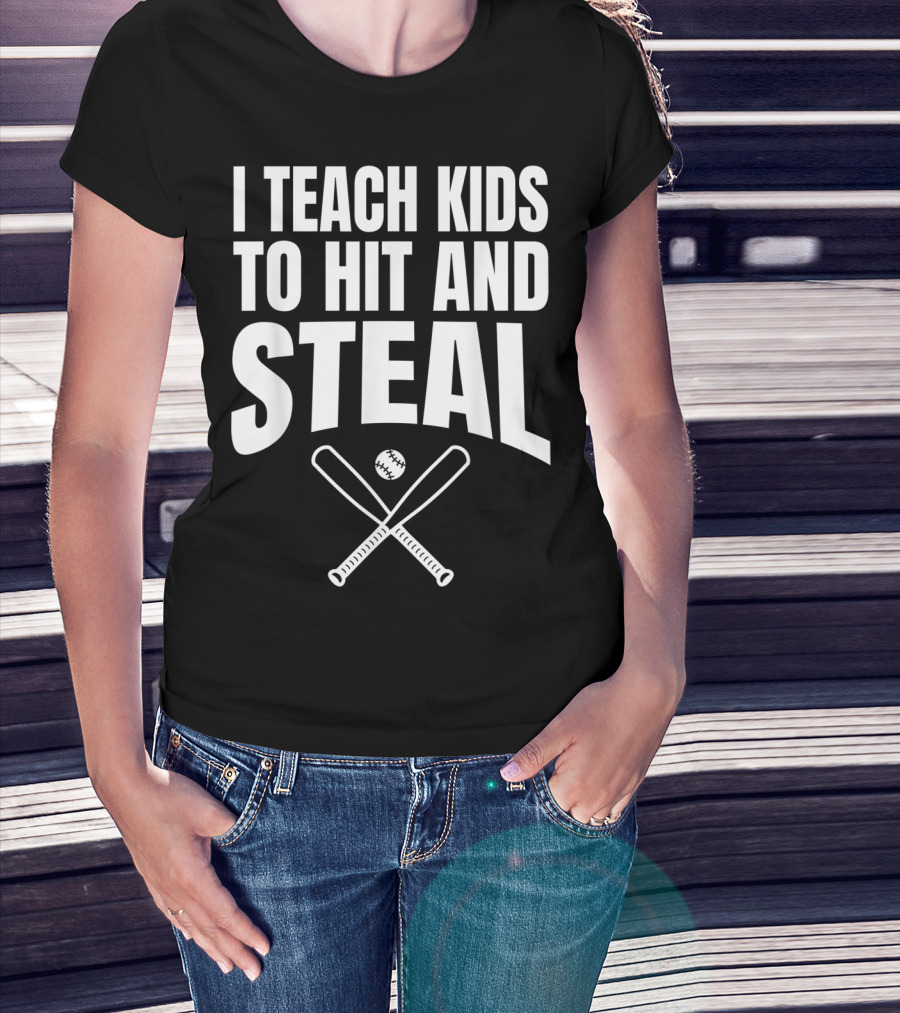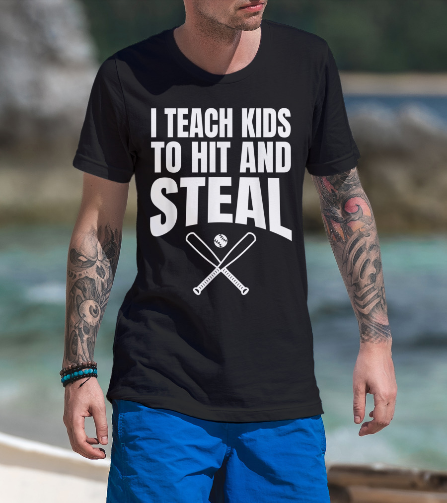 I Teach Kids To Hit And Steal Baseball Coach Bats And Ball T-Shirt