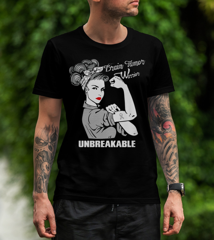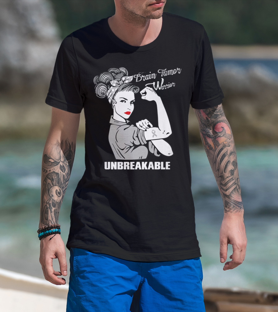 Brain Tumor Warrior Unbreakable Rosie The Riveter T-Shirt