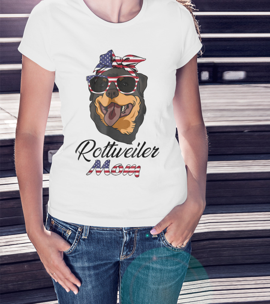 Rottweiler Mom Bandana Glasses American Flag T-Shirt