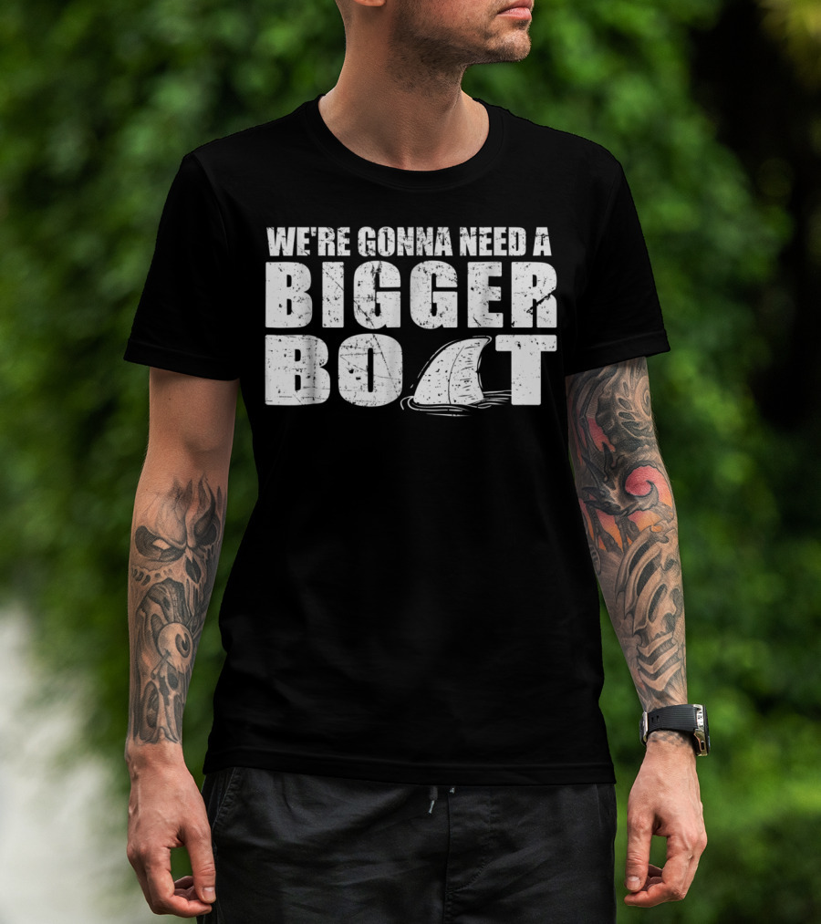 The We're Gonna Need A Bigger Boat Shark Fin Classic T-shirt is designed for everyday wear and a consistent fit. Fabric is pre-shrunk ring-spun cotton with durable stitching. See the size chart below for exact measurements.