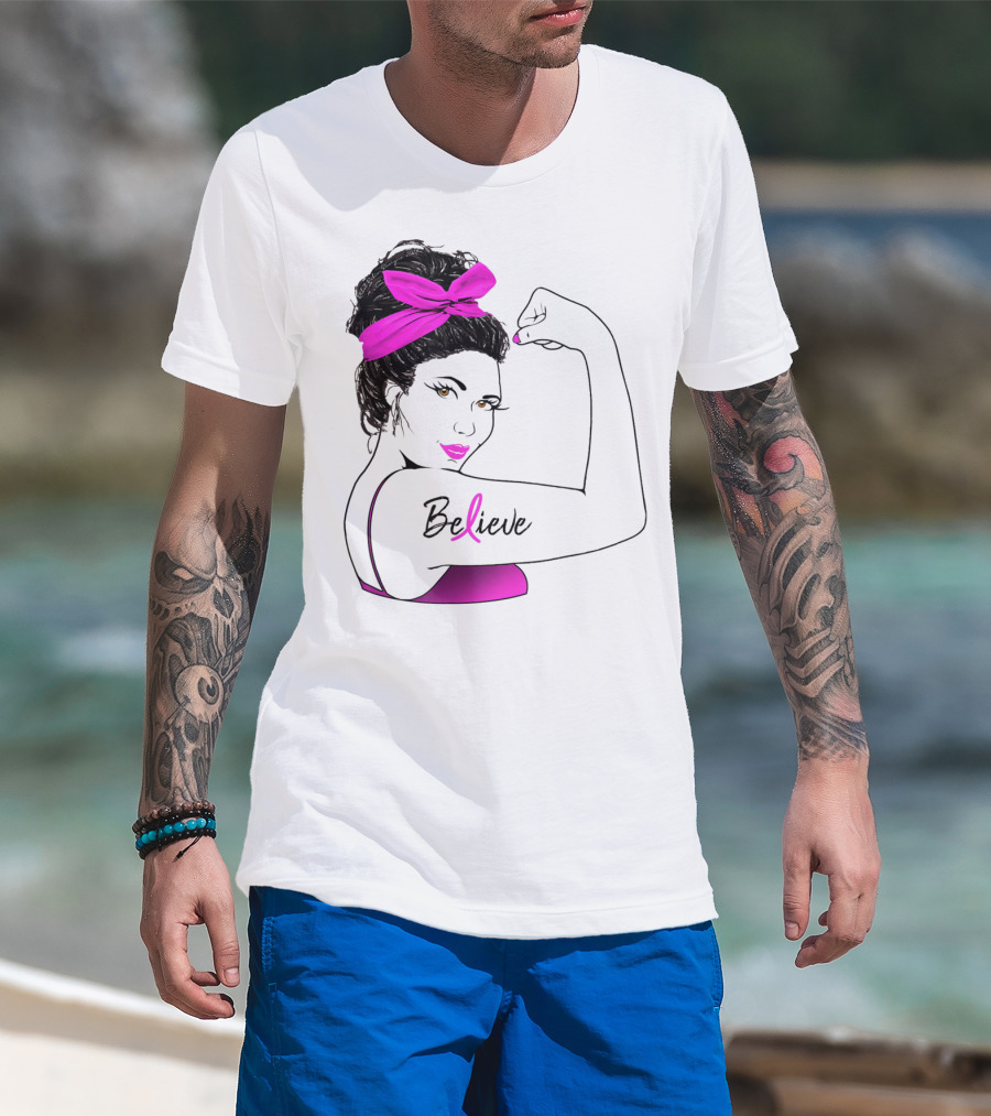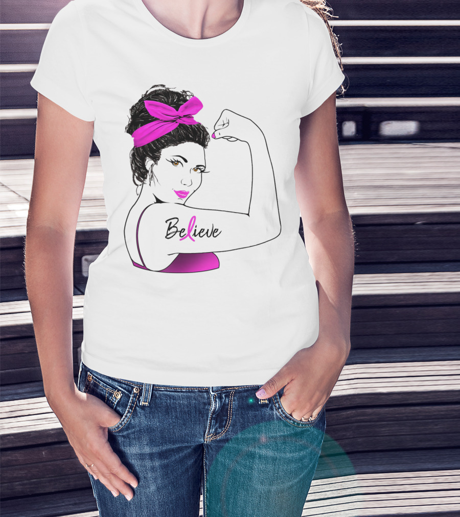 Breast Cancer Believe Unbreakable Rosie Pink Ribbon Power T-Shirt
