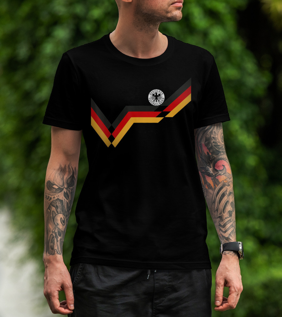 The Germany Soccer Jersey Vintage German 1990 Deutsche Fussball-Bund Top T-shirt is designed for everyday wear and a consistent fit. Fabric is pre-shrunk ring-spun cotton with durable stitching. See the size chart below for exact measurements.