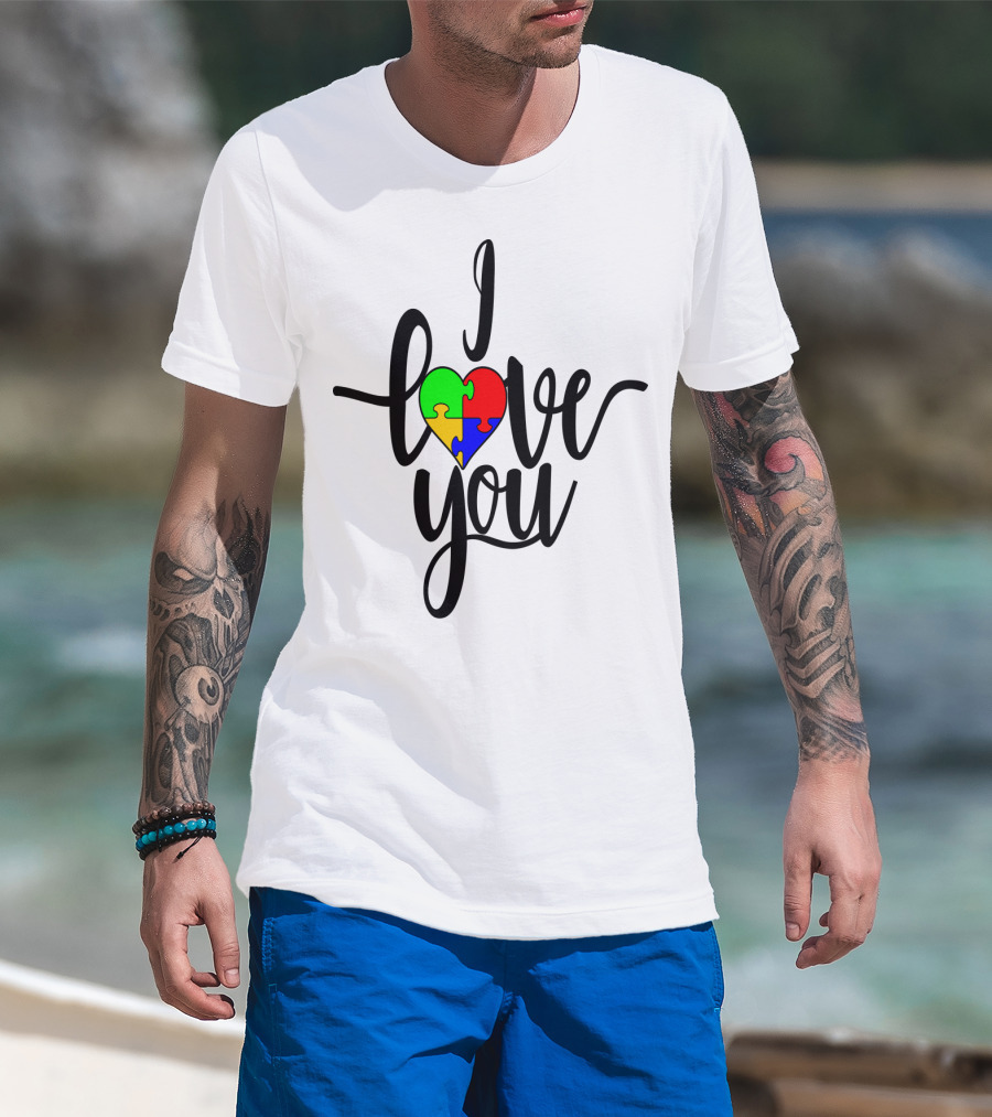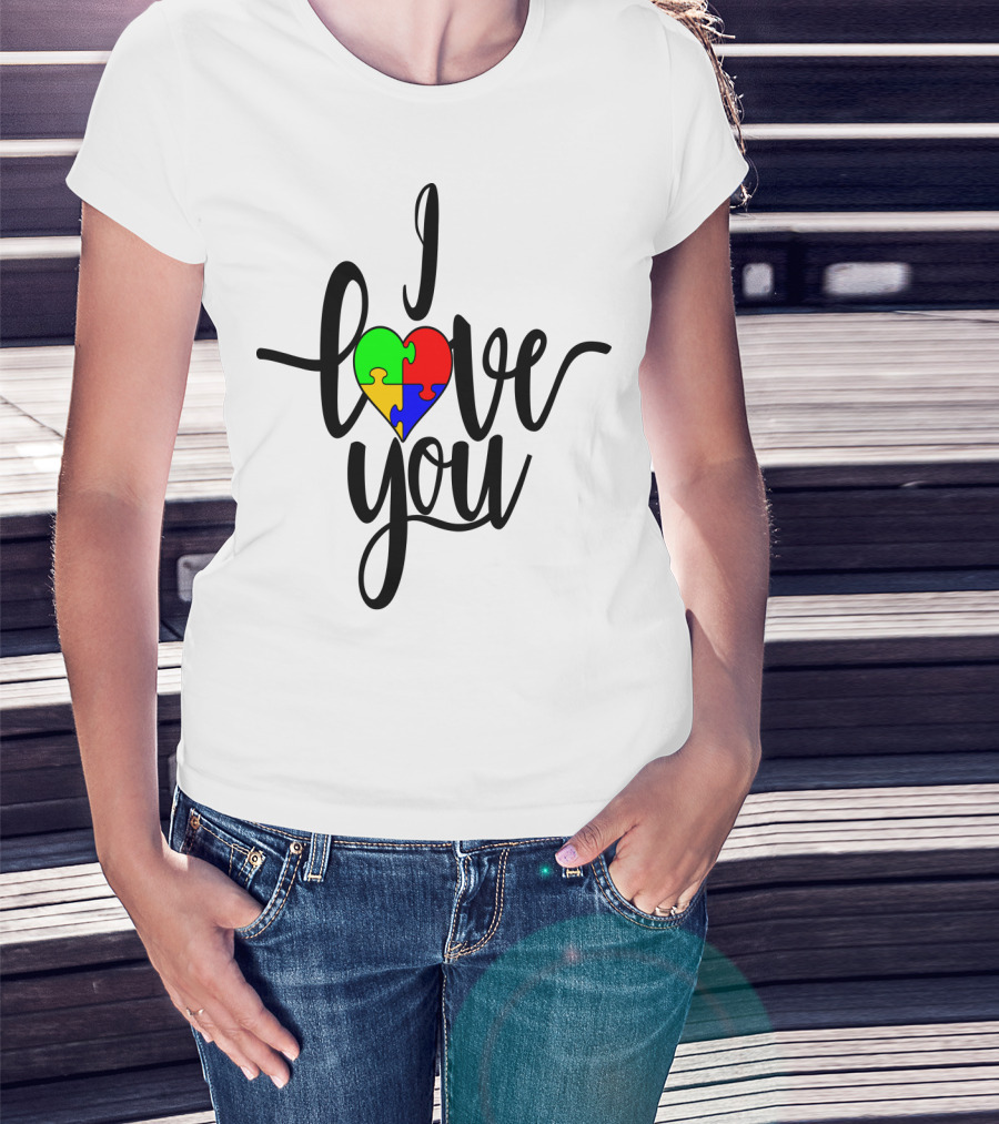 Autism Puzzle Heart I Love You Son Daughter Mom Dad T-Shirt