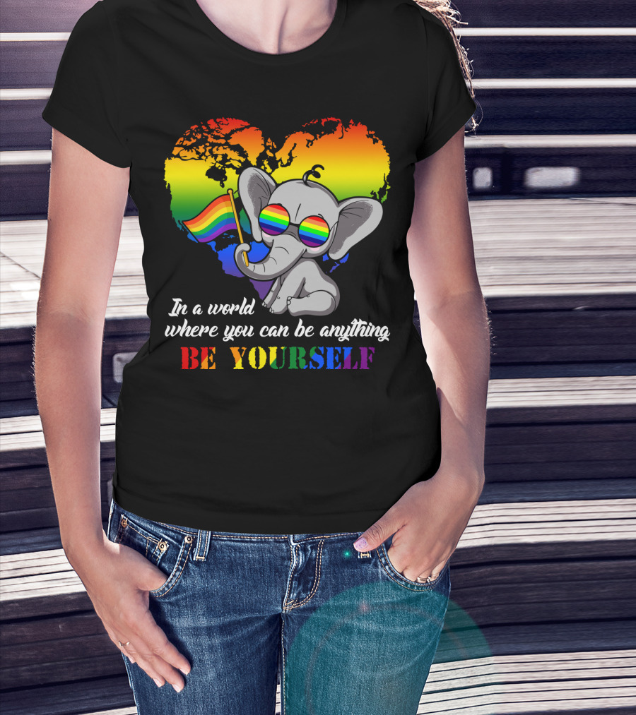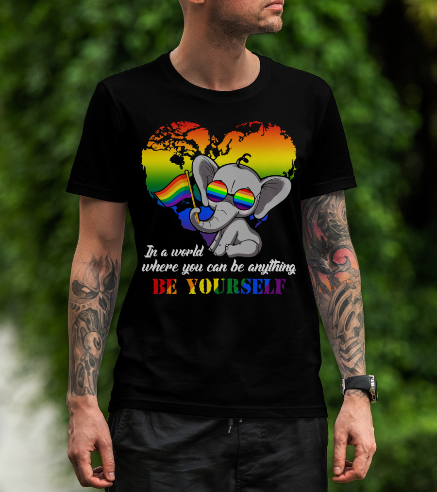 In A World Where You Can Be Anything Be Yourself Rainbow Elephant Pride T-Shirt