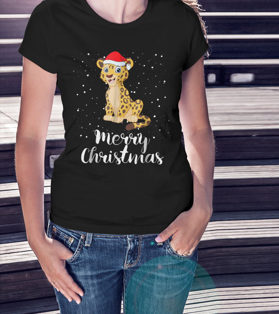 Merry Christmas Leopard Santa Hat Matching Family Group T-Shirt