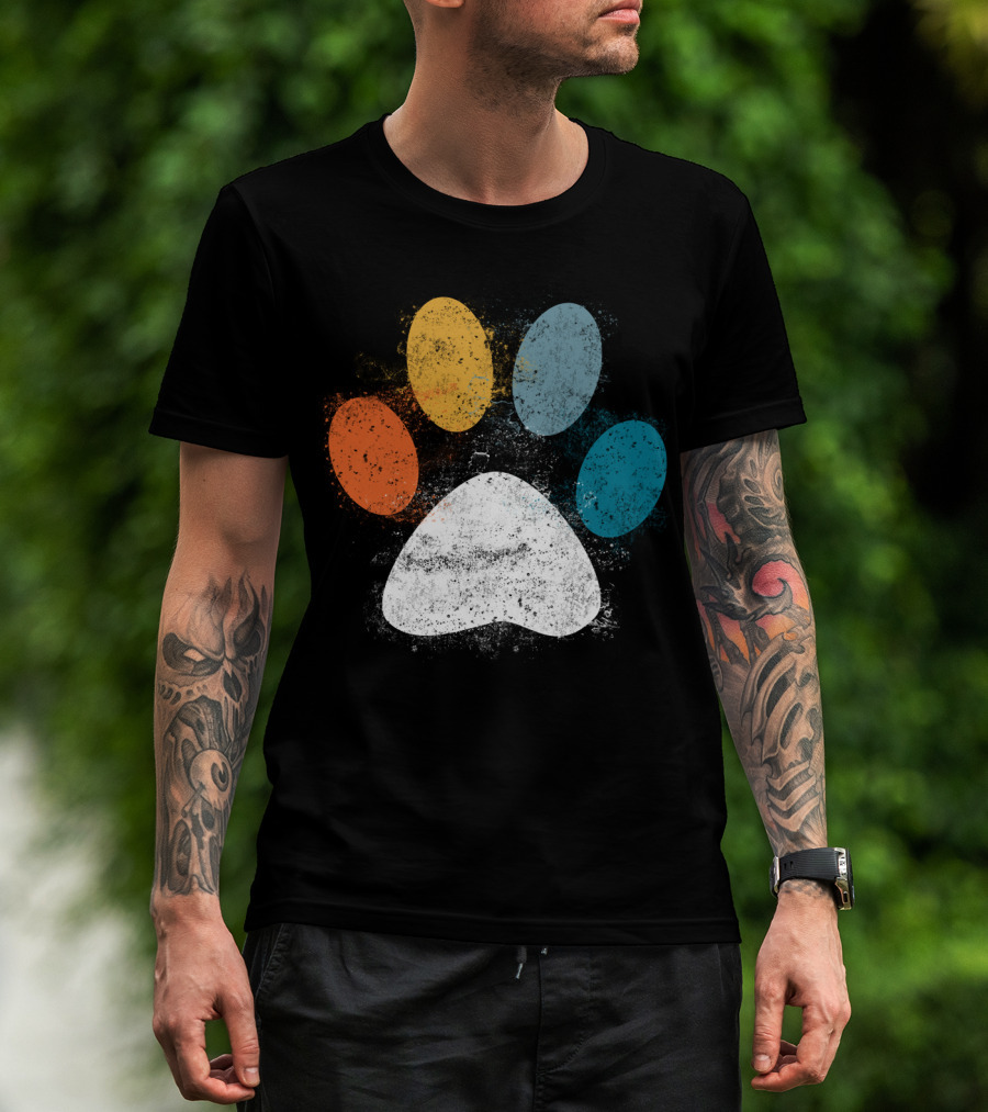 Vintage Distressed Multi-Color Dog Paw Print Love T-Shirt