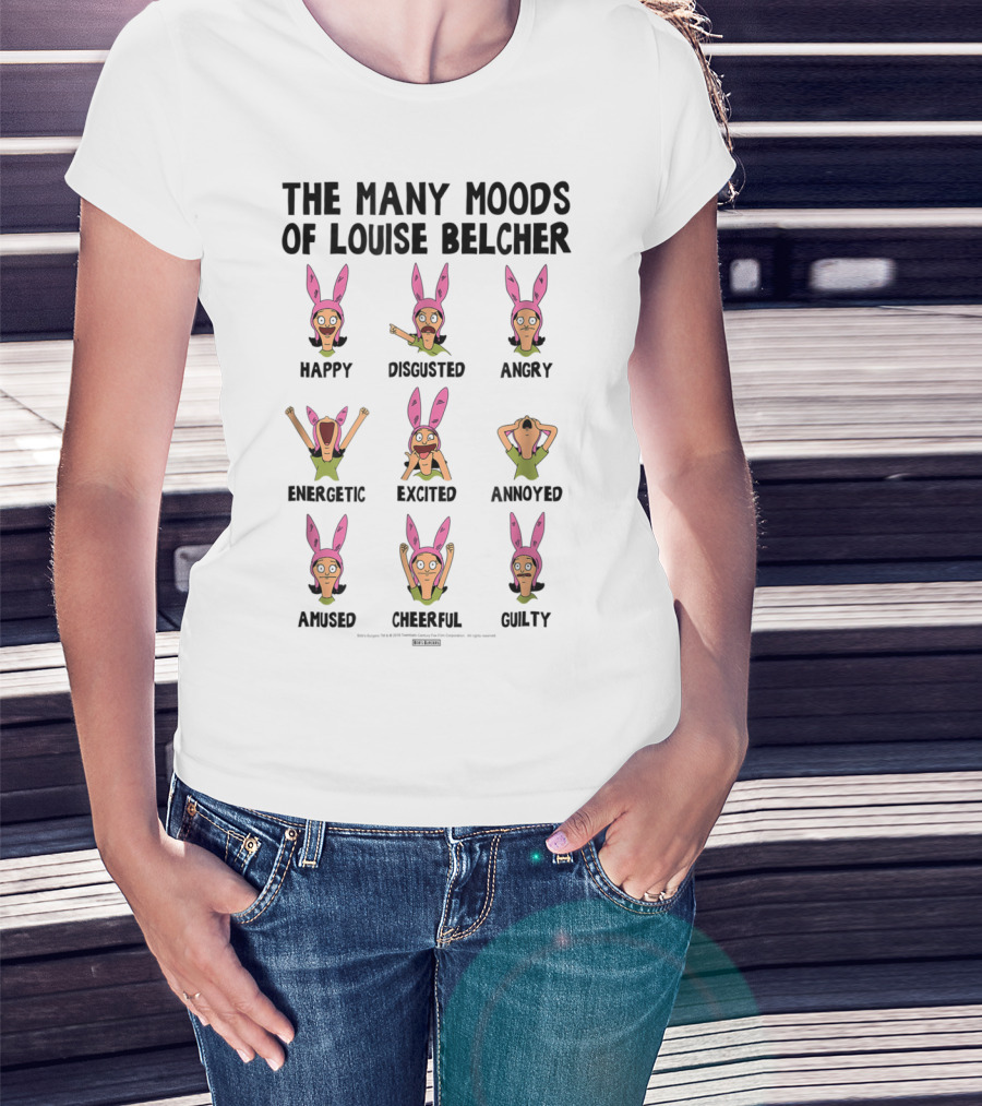 The Many Moods Of Louise Belcher Happy Disgusted Angry Energetic Excited Annoyed Amused Cheerful Guilty T-Shirt