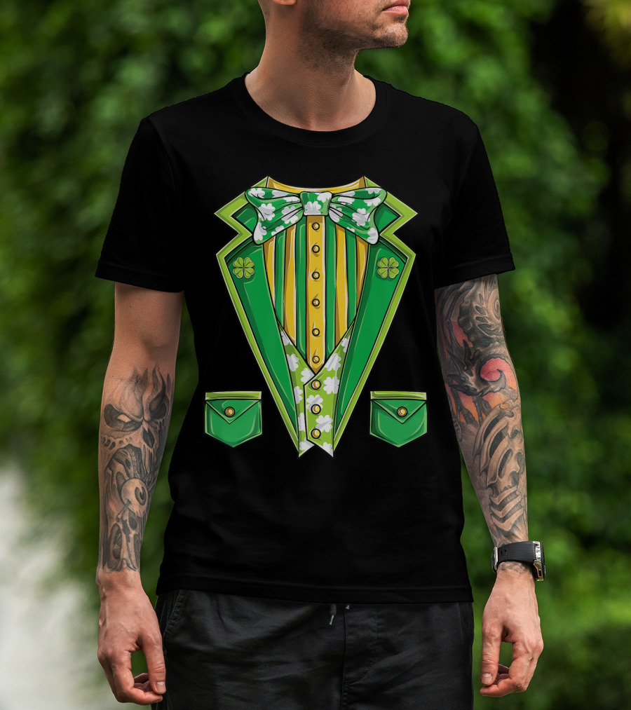 Leprechaun Costume Green Suit With Clover Bowtie For St Patricks Day T-Shirt