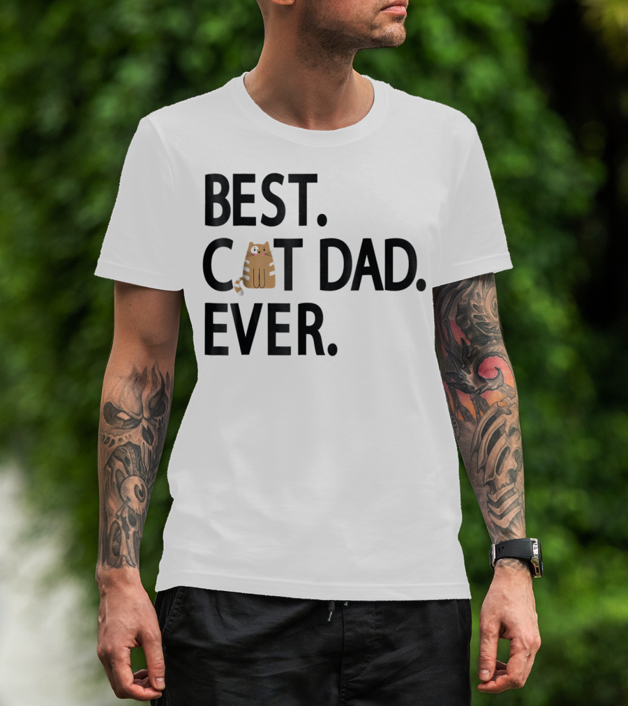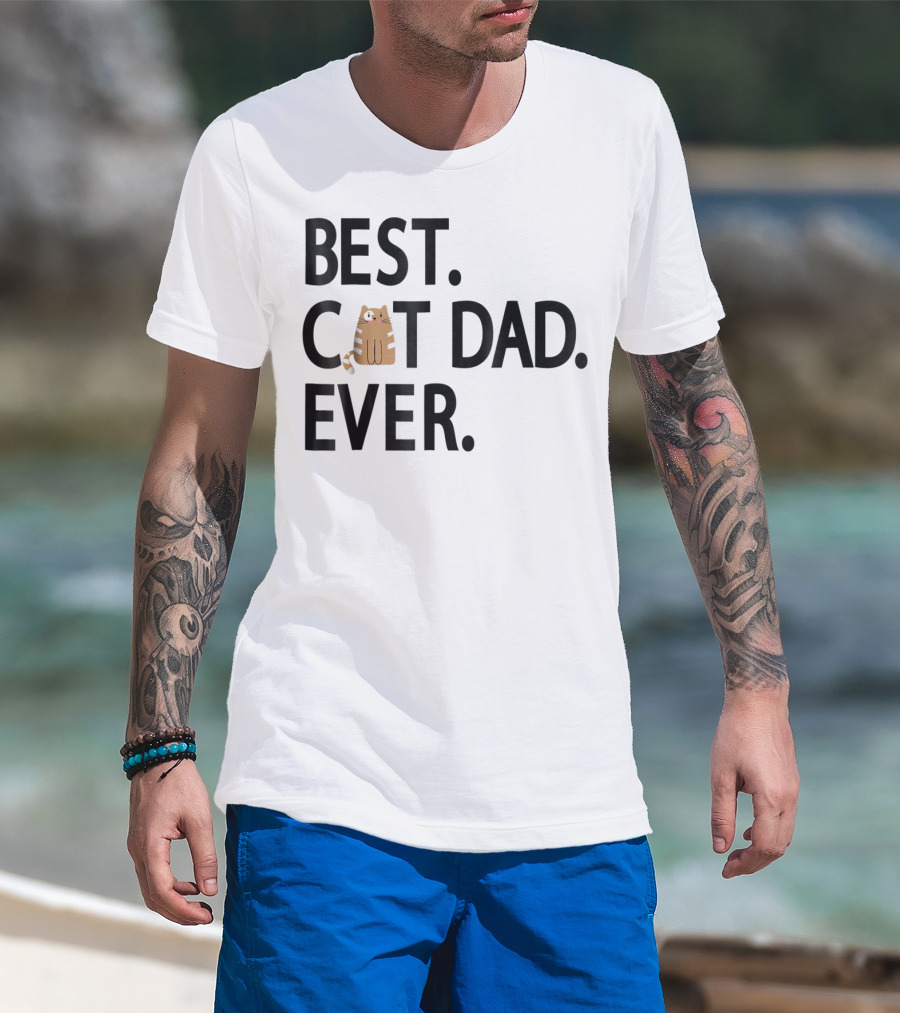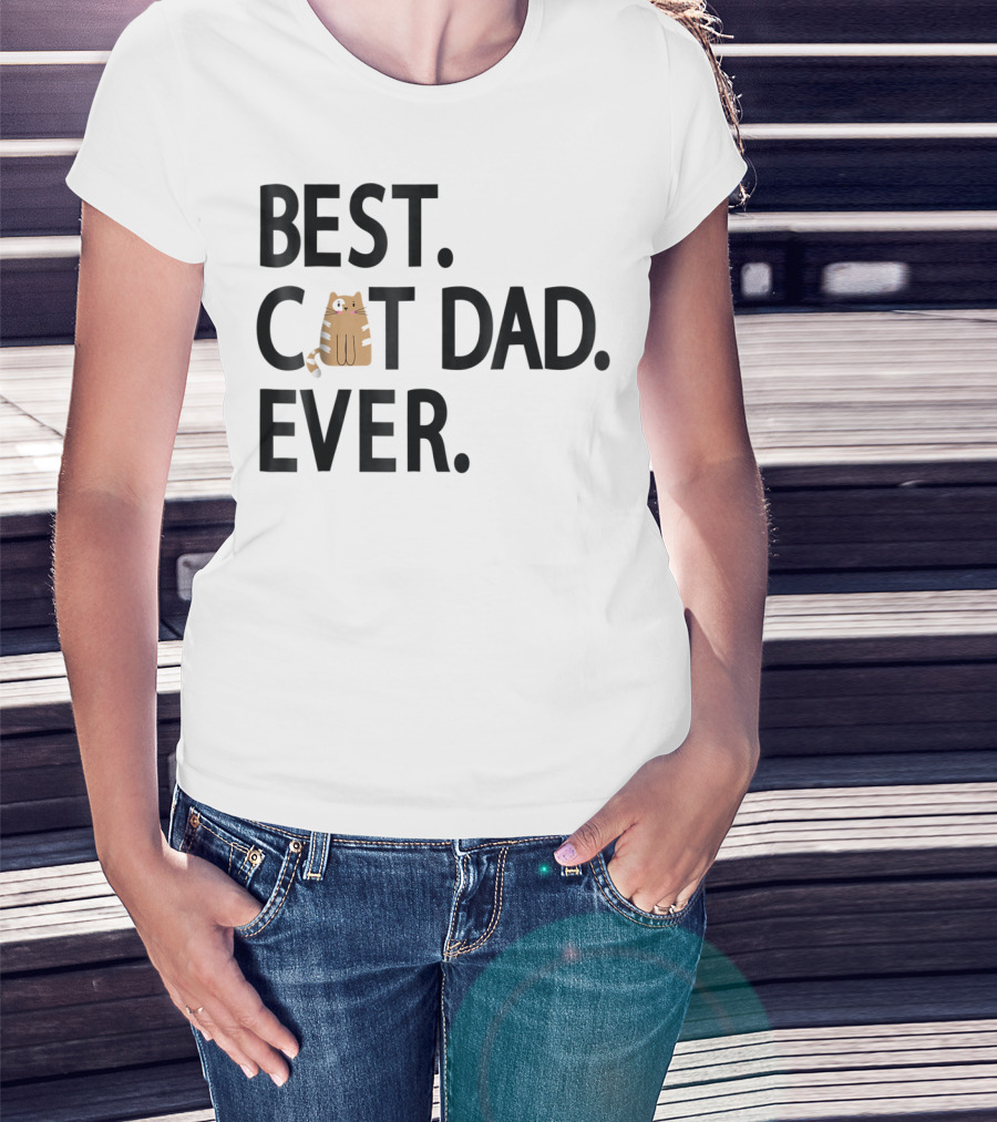 Best Cat Dad Ever Cute Funny Novelty Shirt With Adorable Cat Image T-Shirt