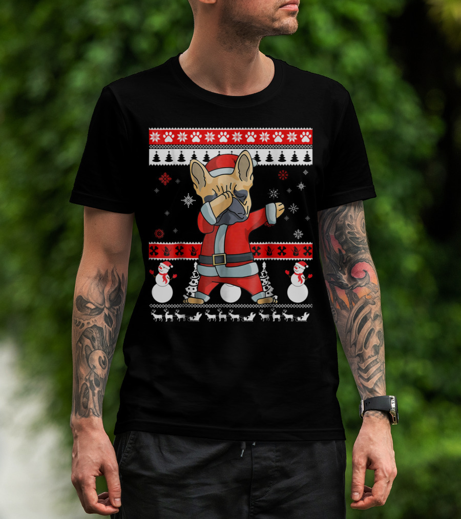 Dabbing French Bulldog Christmas Santa Ugly Sweater Snowflakes Snowmen T-Shirt