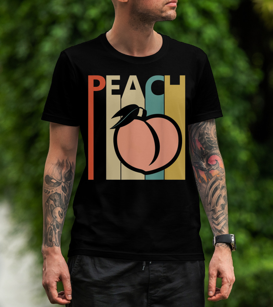 The Vintage Peach Retro Fruit Emoji Peach T-shirt is designed for everyday wear and a consistent fit. Fabric is pre-shrunk ring-spun cotton with durable stitching. See the size chart below for exact measurements.