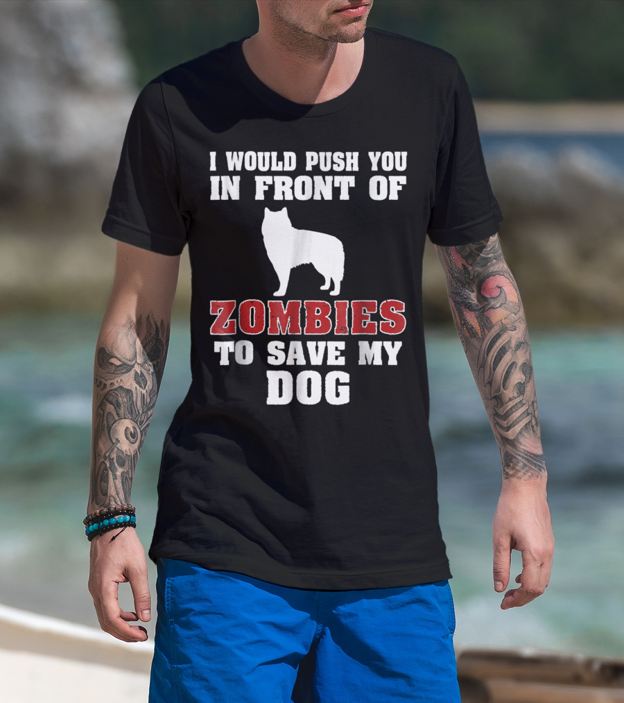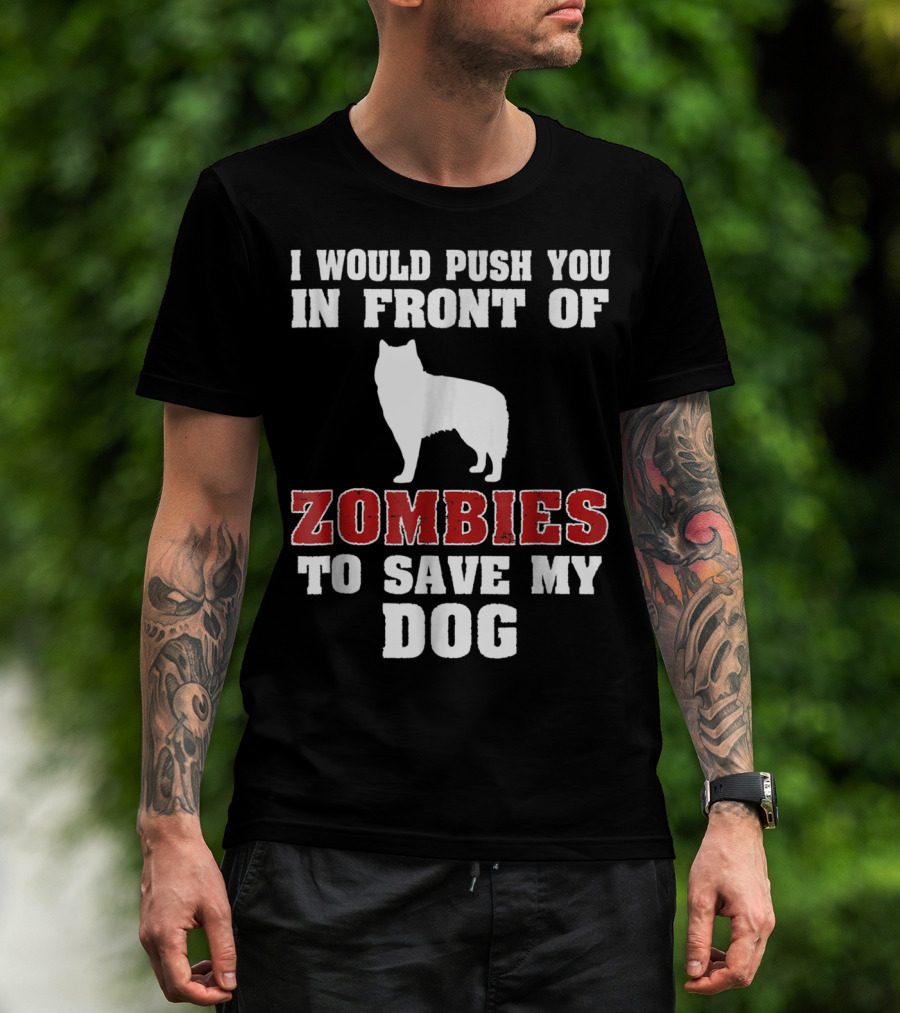 Alaskan Malamute Dog I Would Push You In Front Of Zombies To Save My Dog Halloween Mom Dad Funny T-Shirt