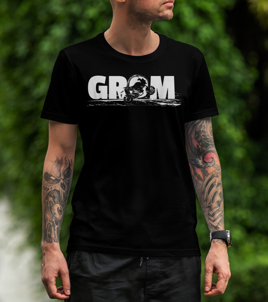 GROM Wheelie Silhouette In Bold Lettering T-Shirt