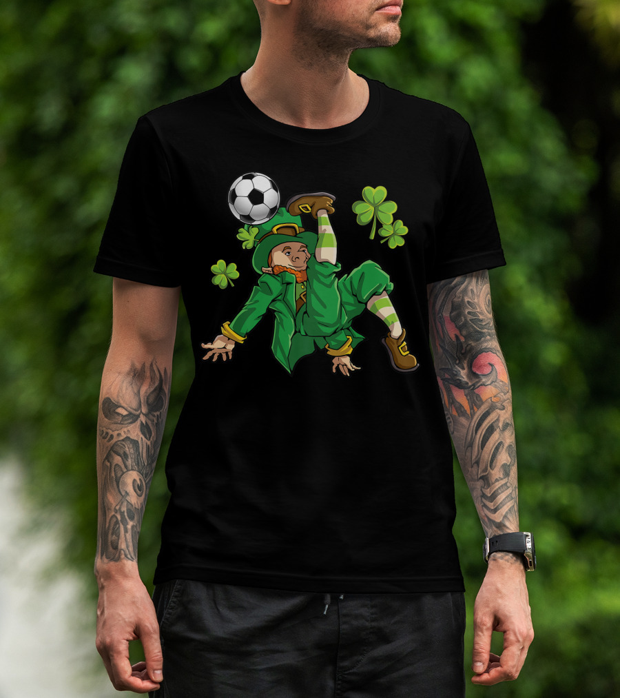Leprechaun Soccer With Shamrocks And Soccer Ball Kick T-Shirt