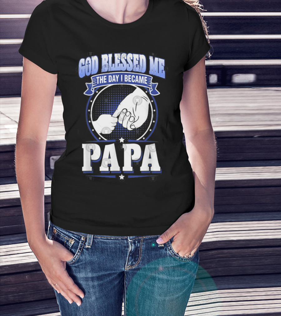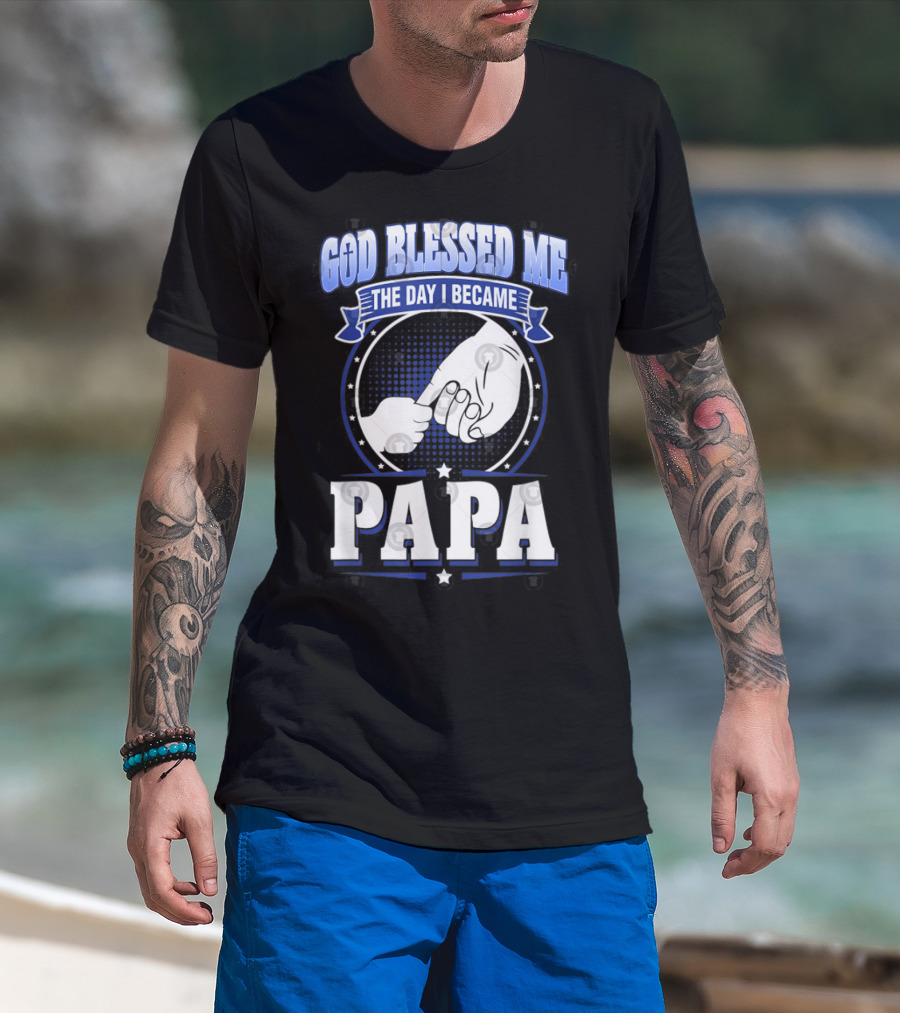 God Blessed Me The Day I Became Papa Hand-Holding T-Shirt