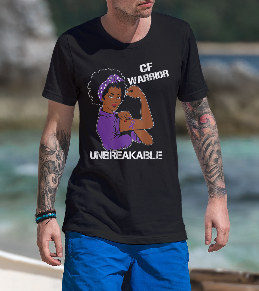 The CF Warrior Unbreakable Strong Woman Purple T-shirt is designed for everyday wear and a consistent fit. Fabric is pre-shrunk ring-spun cotton with durable stitching. See the size chart below for exact measurements.