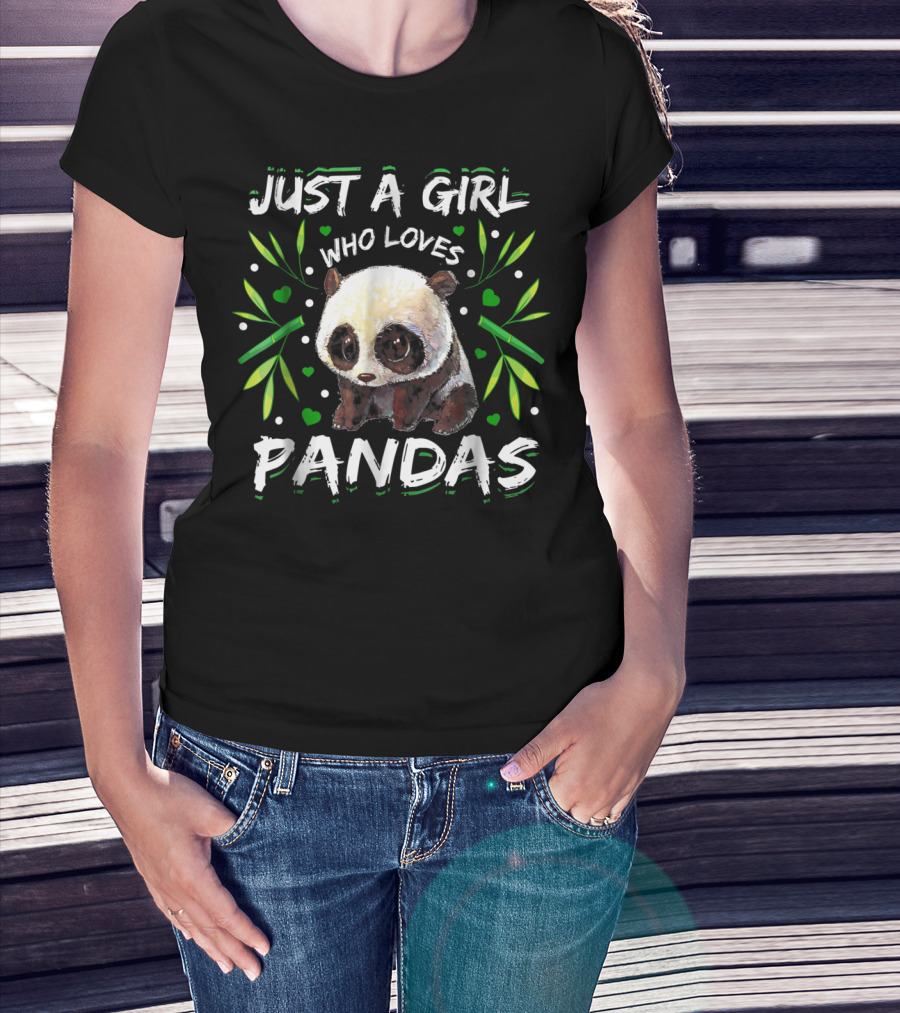 JUST A GIRL WHO LOVES PANDAS WITH HEARTS AND BAMBOO LEAVES T-Shirt
