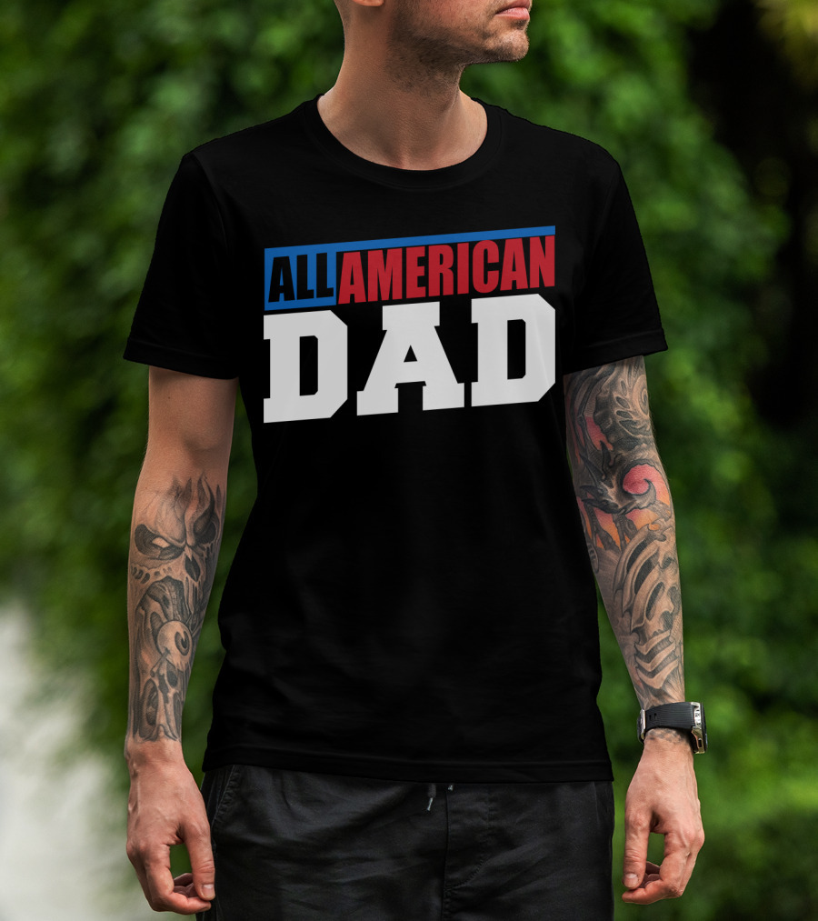 The All American Dad Patriotic Patriot60 T-shirt is designed for everyday wear and a consistent fit. Fabric is pre-shrunk ring-spun cotton with durable stitching. See the size chart below for exact measurements.