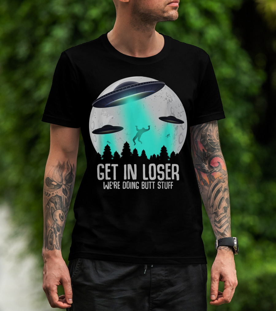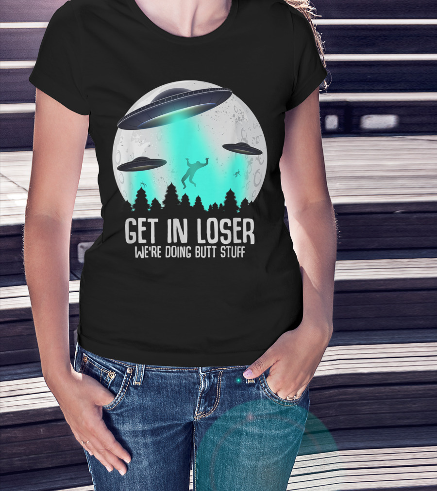 Get In Loser We're Doing Butt Stuff Alien Abduction UFO Moon T-Shirt