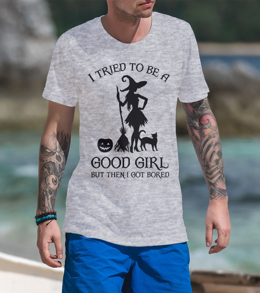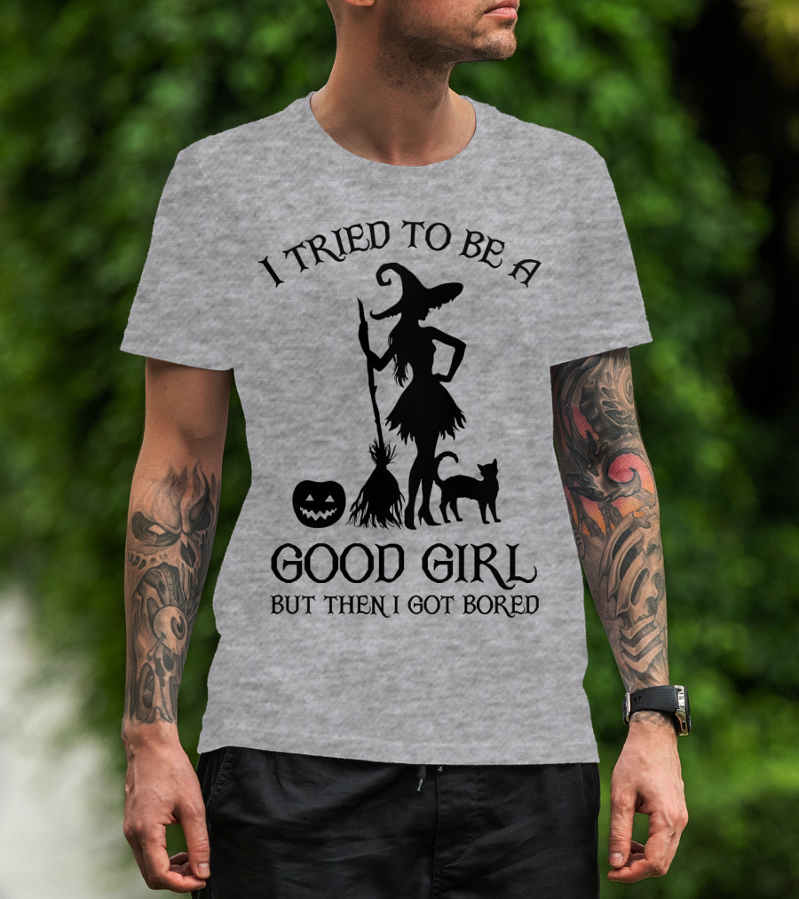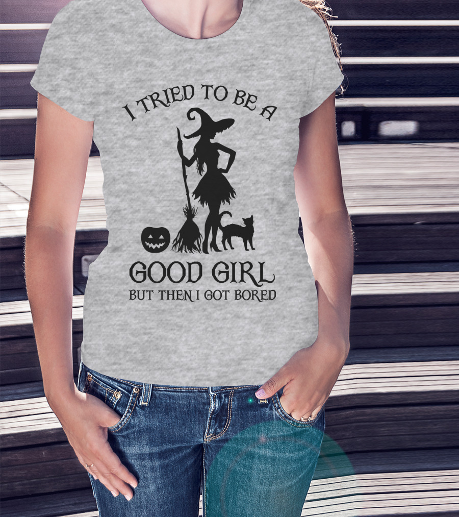 I Tried To Be A Good Girl But Then I Got Bored Witch Cat Pumpkin Broom T-Shirt