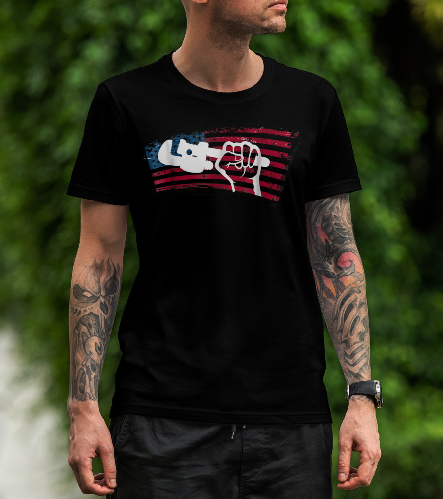 American Flag Plumber Dad Wrench Fist T-Shirt