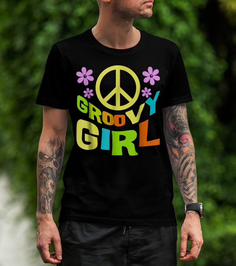 The Groovy Girl 60s 70s Peace Sign Flower Power Costume Party Wear T-shirt is designed for everyday wear and a consistent fit. Fabric is pre-shrunk ring-spun cotton with durable stitching. See the size chart below for exact measurements.