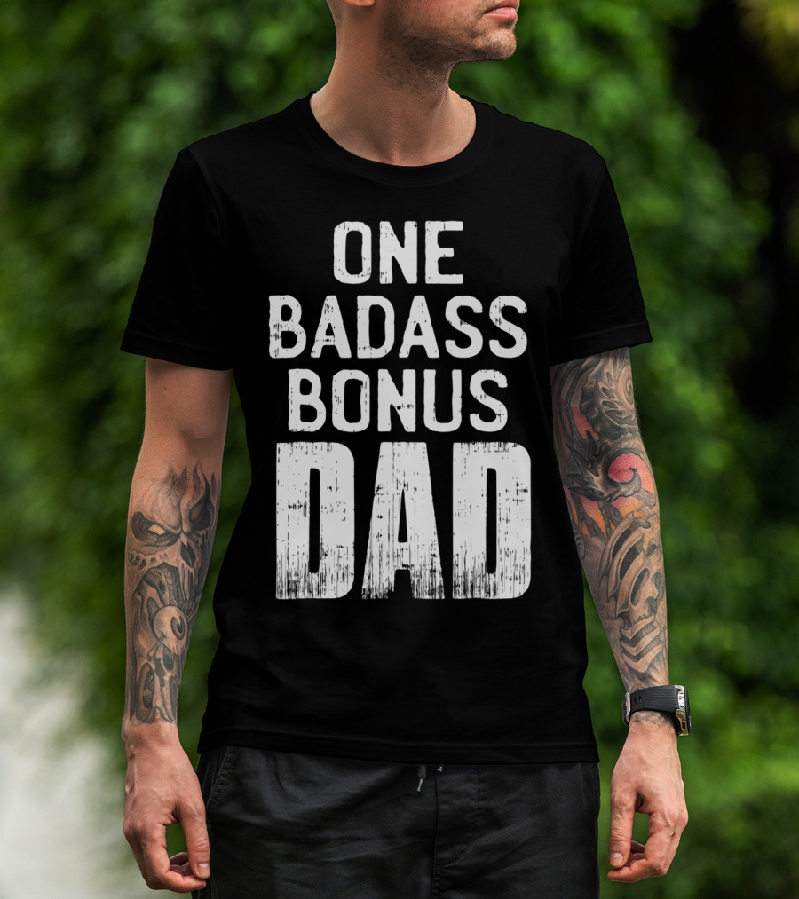 The One Badass Bonus Dad T-shirt is designed for everyday wear and a consistent fit. Fabric is pre-shrunk ring-spun cotton with durable stitching. See the size chart below for exact measurements.