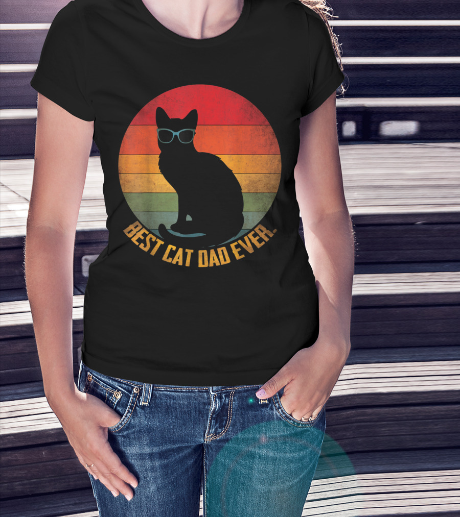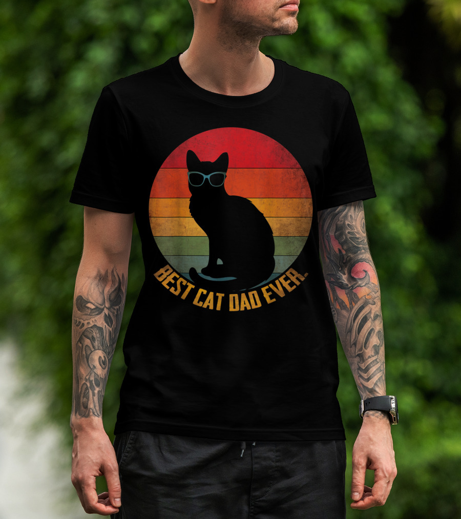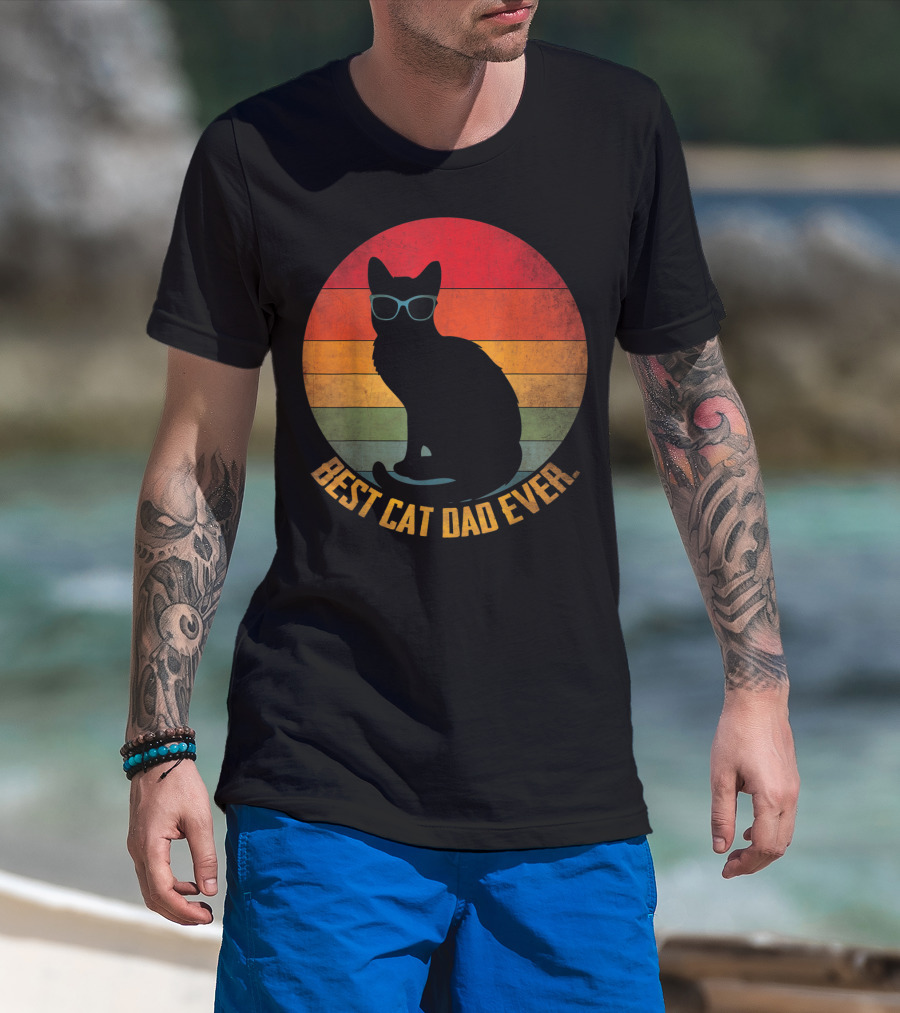 Vintage Sunset Best Cat Dad Ever Silhouette With Sunglasses T-Shirt