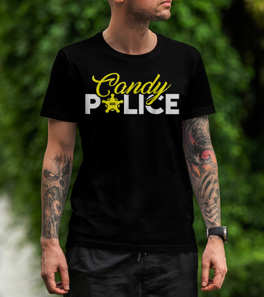 The Candy Police Halloween Badge Humor T-shirt is designed for everyday wear and a consistent fit. Fabric is pre-shrunk ring-spun cotton with durable stitching. See the size chart below for exact measurements.