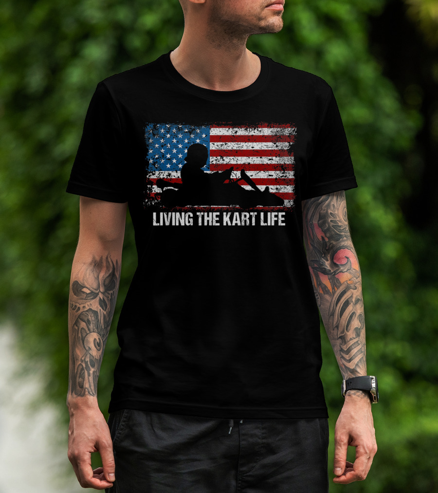 Living The Kart Life American Flag Go Kart Racing T-Shirt